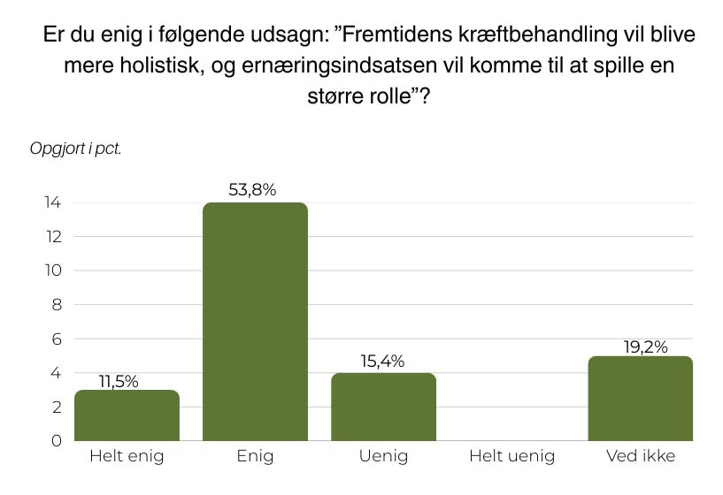 Vil man i fremtidens kræftbehandling fjerne fokus fra nye medicinske behandlinger? Og kigge mere på, at ernæring og fysisk træning også er vigtige parametre, hvis man skal lykkes med en behandling? Ja, siger 65,3 procent af de yngre onkologer i en undersøgelse lavet af Medicinske Tidsskrifter. Her har 26 yngre onkologer svaret på deres holdning til ernæringsindsatser for kræftpatienter.
