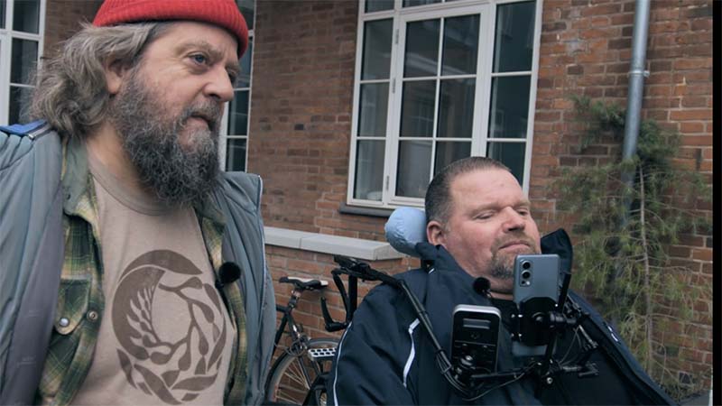 Preben sidder i kørestol, Anders Lund Madsen må made ham, og hans daglige tøjskift, den personlige hygiejne og nødvendige fysiske øvelser er en kilde til konstante stærke smerter og spasmer trods hjælp fra sygeplejerske.